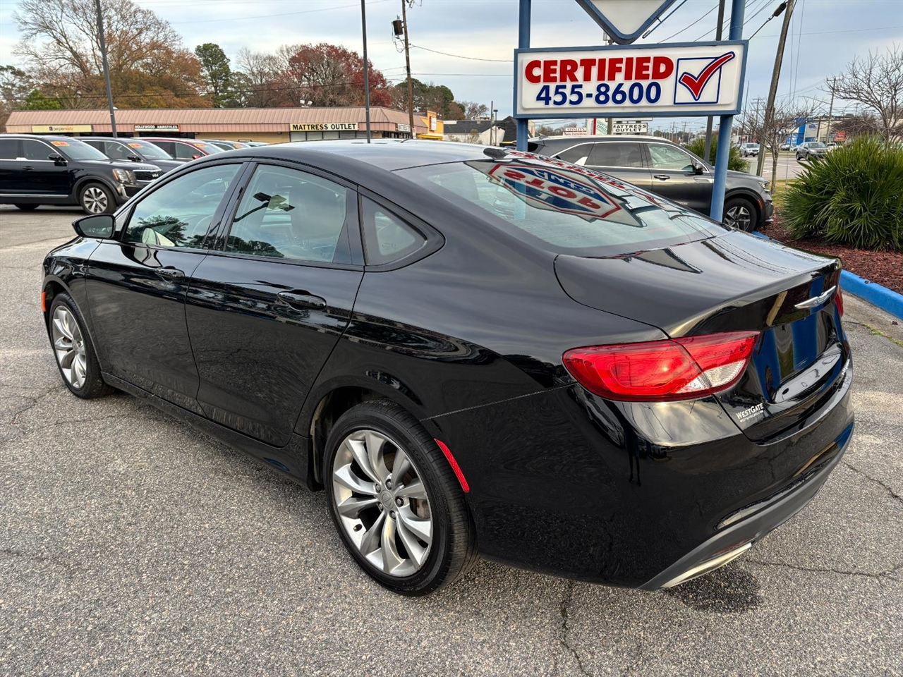 2015 Chrysler 200 S Black Clearcoat Black miles 114,667 mpg city 19 mpg hwy 32 ENGINE: 3.6L V6 24V VVT, TRANSMISSION: 9-SPEED 9HP48 AUTOMATIC, QUICK ORDER PACKAGE 26L, WHEELS: 18 X 8.0 SATIN CARBON ALUMINUM, TIRES: P235/45R18 BSW AS, BLACK CLEARCOAT, BLACK, CLOTH W/LEATHER TRIMMED SPORT SEATS, COMFORT GROUP, 50 STATE EMISSIONS, BLIND SPOT & CROSS PATH DETECTION, MANUFACTURER'S STATEMENT OF ORIGIN CALL TODAY 757-455-8600!! 6440 E Virginia Beach Blvd Norfolk VA 23502